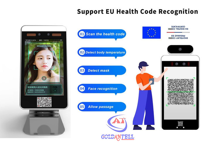8 ইঞ্চি অ্যান্ড্রয়েড ফেসিয়াল রিকগনিশন টার্নস্টাইল ইইউ গ্রিন কিউআর কোড রিডার
