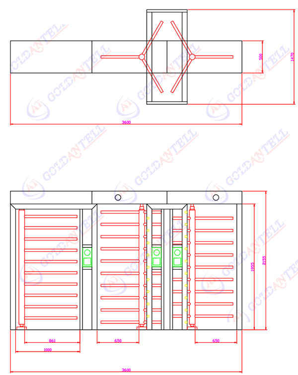 | টাইপ | উচ্চ নিরাপত্তা ডুয়াল অ্যাক্সেস সম্পূর্ণ উচ্চতা টার্নস্টাইল | নেট ওজন | 200 কেজি |